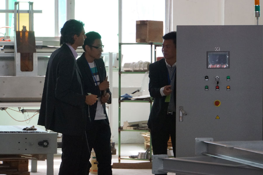 2013-10-1日,上午十時許,在“嘉俊集團”總部,公司王總與外貿負責人王經理接待了意大利人—Paolo,商務會議大約持續(xù)了一個小時,接著王總帶領毛總等參觀了生產車間現場,王總介紹了國內先進的大型包裝設備懸臂式纏繞機,全自動打包機開箱機,封箱機系列的流水線,并參觀了“嘉俊集團”產品展示廳,Paolo對產品的制作工藝和技術給予了肯定。